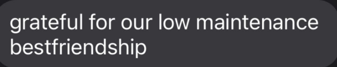 Naturally, I am a low-maintenance friend so the bar for “expectations” and communication is set respective to that. In my relationships I value presence over cadence. This is in part due to my own shortcomings when it comes to keeping in touch digitally - I suck at responding to texts and returning calls to the point where I have a block every Monday from 4-5pm to catch up and reply to things. Can you really blame me? There’s so many apps and ways to keep in touch it’s exhausting and doesn’t leave me with energy or thoughts for things that I really value - in person hangouts.